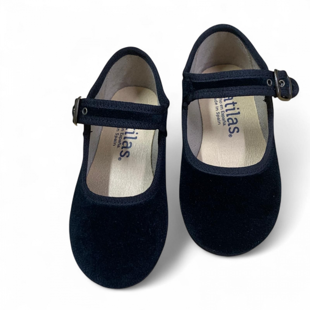 Zapato de niña estilo Mercedita con cierre en hebilla y suela de goma flexible y antideslizante.