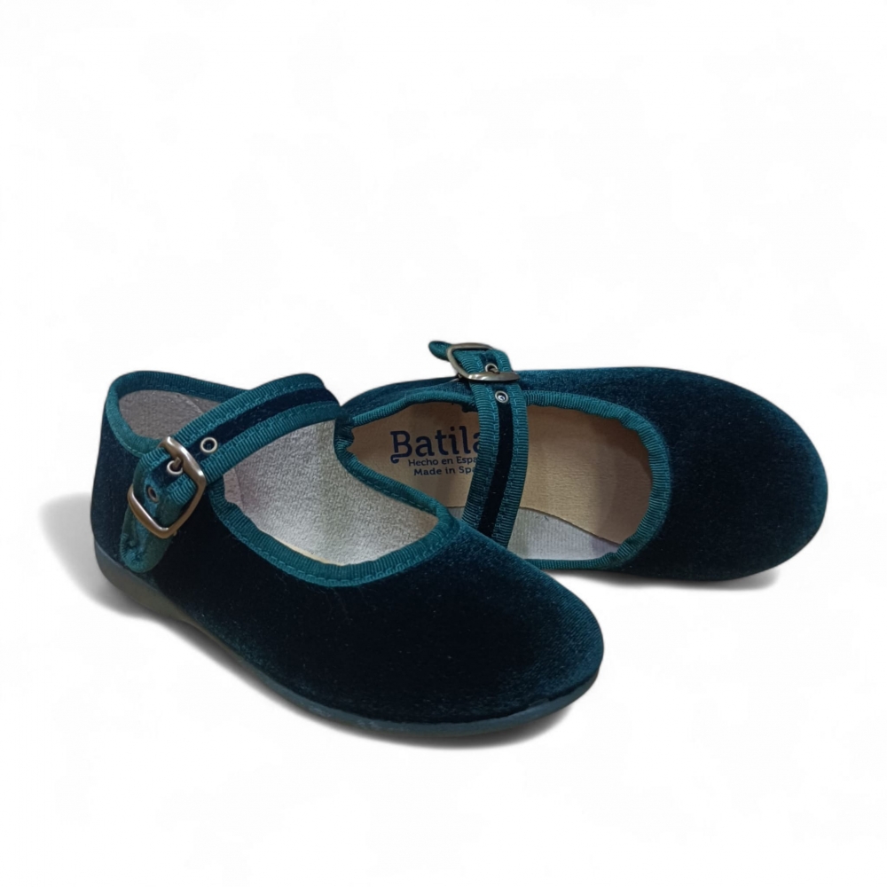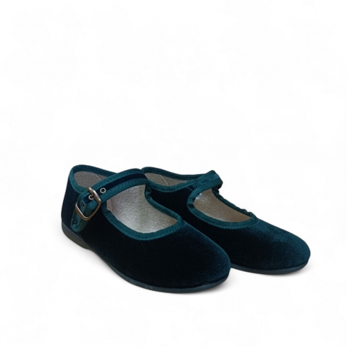 Zapato de niña estilo Mercedita con cierre en hebilla y suela de goma flexible y antideslizante.