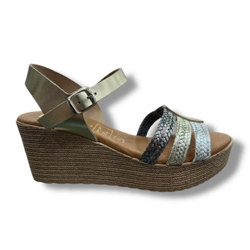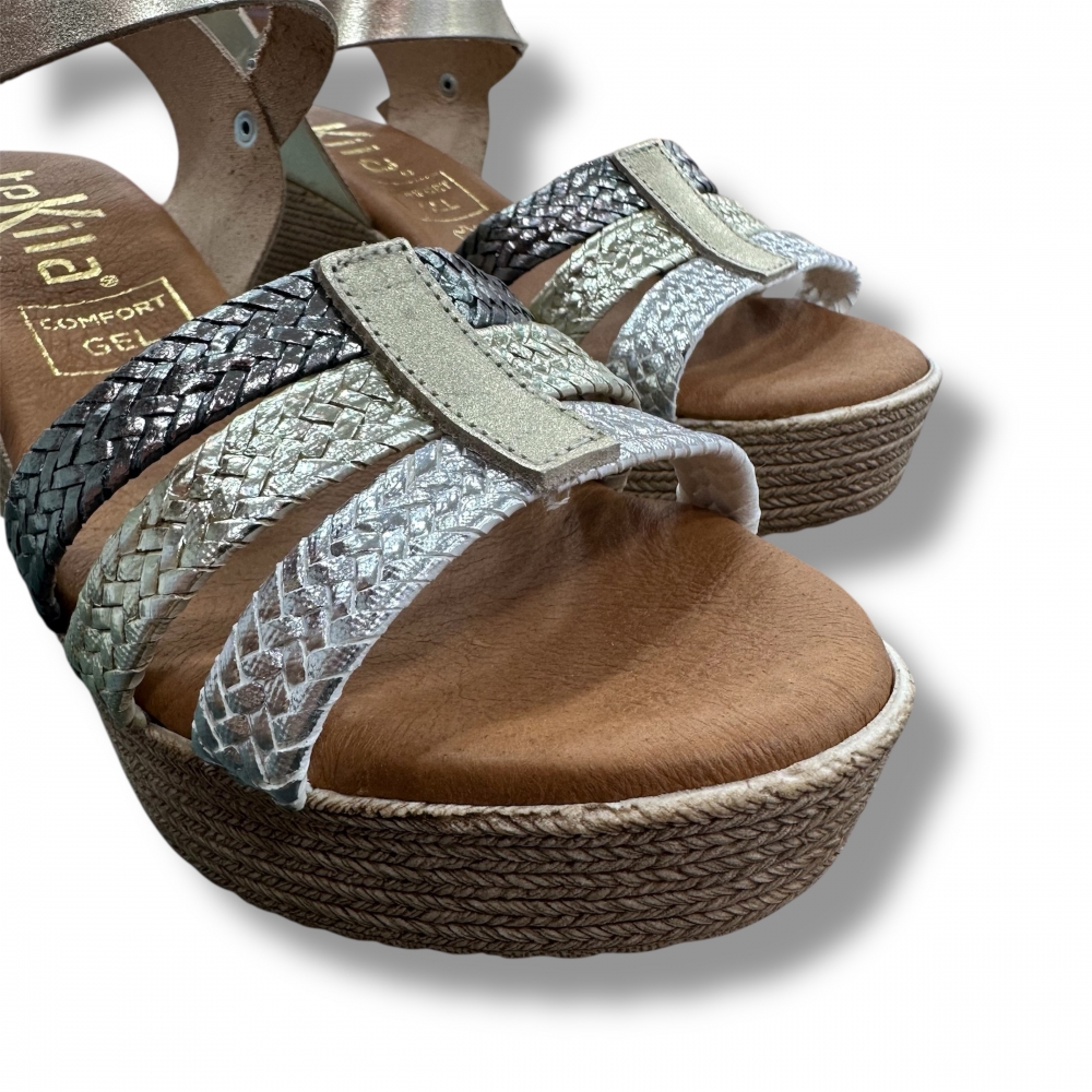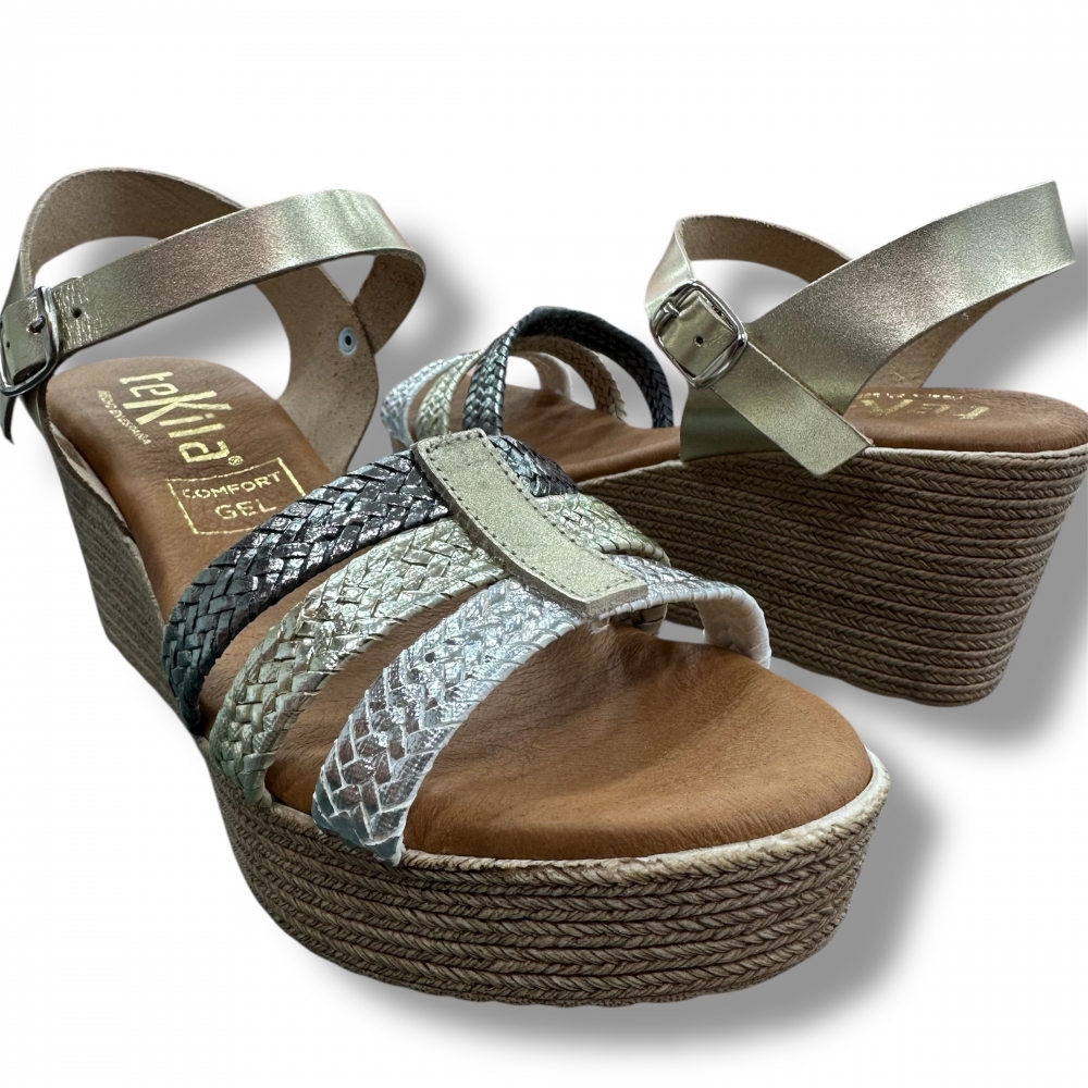 Sandalia de cuña con plantilla de gel y fabricada en piel natural.