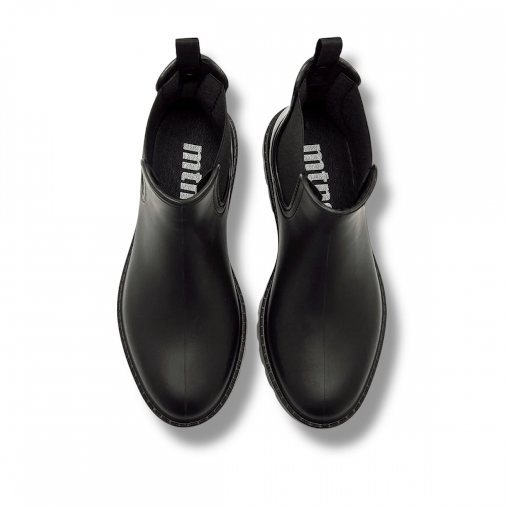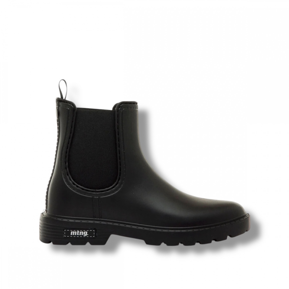 Botines de agua planos de color negro para mujer, modelo Halo de la marca Mustang estilo chelsea. Su diseño minimalista con laterales elásticos en el mismo tono crea un acabado versátil y fácil de combinar. La suela con relieve aporta confort, ideal para el uso diario. Este botín se convierte en una opción práctica para looks informales y jornadas de entretiempo, ofreciendo un estilo sencillo que nunca pasa de moda.