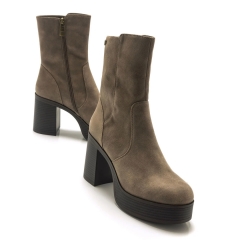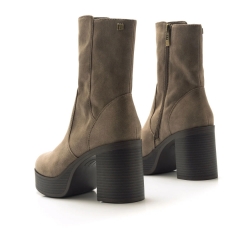 Botín de tacón alto Sixties Mustang para mujer. Diseñadas en cuero sintético de color negro, destacan especialmente gracias a su alta plataforma. Caña ajustada. Tacón de bloque de efecto madera. tachuela con el logo de la marca en la parte superior de la caña. Querrás que formen parte tanto de tus looks para vestir, como de tus looks más informales.