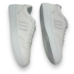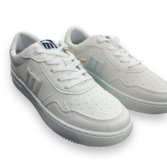 Zapatillas blancas para hombre de la marca Mustang, modelo Gravity, con estilo urbano y diseño de inspiración deportiva. Incluyen detalles en negro y marrón en la parte trasera que aportan contraste sin perder la estética limpia del conjunto. El logo lateral en relieve y la puntera perforada añaden personalidad y funcionalidad al diseño. La suela elevada de color uniforme ofrece una pisada cómoda. Perfectas para quienes buscan un calzado versátil y actual para combinar con looks informales. Con certificado VEGANO sellado por INESCOP, el cual garantiza que la naturaleza química principal del material no se corresponde con fibras de origen animal.