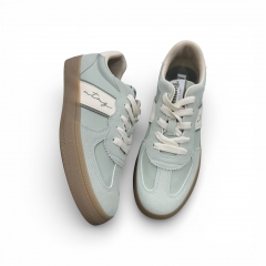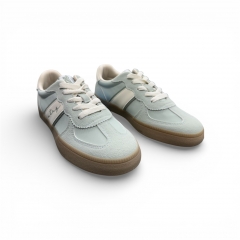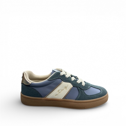 Zapatillas de color blanco con detalles gris y marrón para mujer, modelo Roy de Mustang. Su diseño combina una base clara con contraste en el talón y bandas laterales, aportando un aire retro muy versátil. La suela de goma en color caramelo ofrece buen agarre y un acabado clásico, ideal para el uso diario. Con bordado del logo lateral y una silueta inspirada en el calzado deportivo vintage, este modelo es perfecto para looks relajados con un toque actual.