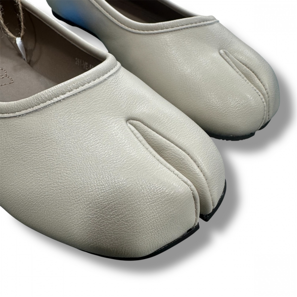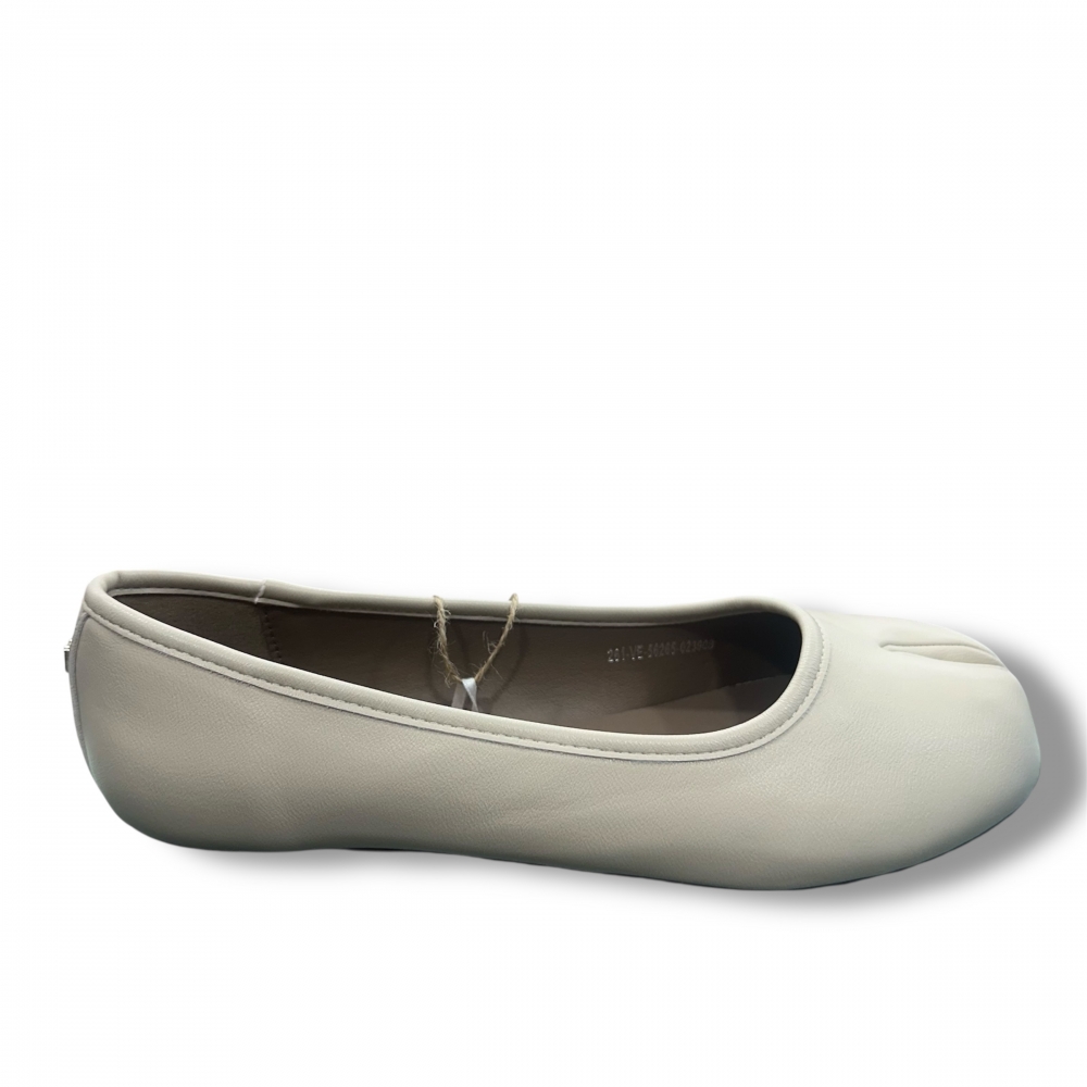 Bailarina de color blanco roto para mujer, modelo Tabatha de la marca Mustang de estilo clásico con un diseño en la puntera tipo 'tabi'. Su acabado liso y minimalista la convierte en una opción versátil para combinar con diferentes estilos. La suela fina permite un uso cómodo, mientras que el logo metálico en el talón añade un pequeño detalle decorativo sin recargar el conjunto. Con certificado VEGANO sellado por INESCOP, el cual garantiza que la naturaleza química principal del material no se corresponde con fibras de origen animal.