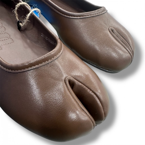 Bailarina de color marrón moka para mujer de la marca Mustang, modelo Tabatha de estilo clásico con diseño tipo tabi, caracterizado por la ligera separación en la puntera que aporta un toque distintivo. Incluye suela fina y el logo metálico de la marca en el talón, ideal para distintos looks con un detalle original. Con certificado VEGANO sellado por INESCOP, el cual garantiza que la naturaleza química principal del material no se corresponde con fibras de origen animal.