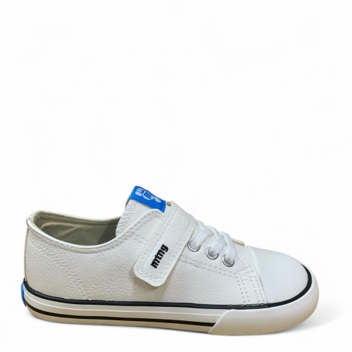 Zapatilla de color blanco para niño modelo Free de Mustang. Su estilo casual y su sistema de cierre adhesivo con cordones elásticos facilita el calce autónomo. El diseño tipo polipiel con suela de goma aporta un estilo urbano y versátil, fácil de combinar con cualquier conjunto. Diseñado y desarrollado especialmente en colaboración con el Dr. Juanjo López, traumatólogo deportivo e infantil, para respetar el desarrollo natural del pie del niño y la niña. Gracias a su puntera ancha permite el libre movimiento de los dedos dentro del zapato. Las plantillas extraíbles facilitan comprobar si la talla del calzado es la correcta para tu hijo. Además, su fácil apertura facilita que el niño pueda descalzarse y calzarse de forma autónoma. Con certificado VEGANO sellado por INESCOP, el cual garantiza que la naturaleza química principal del material no se corresponde con fibras de origen animal.