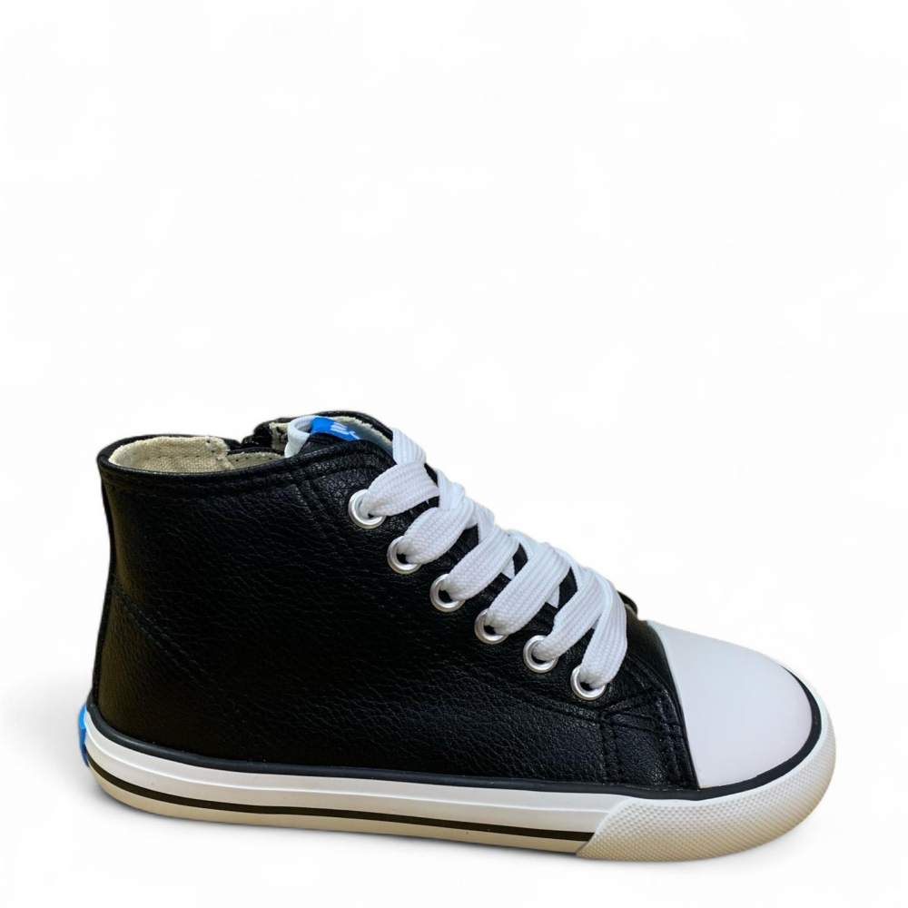 Zapatillas estilo botín para niños, modelo Free de color negro de Mustang. Su diseño de caña media con cierre lateral mediante cremallera y ajuste de cordones permite calzarlos fácilmente. Diseñado y desarrollado especialmente en colaboración con el Dr. Juanjo López, traumatólogo deportivo e infantil, para respetar el desarrollo natural del pie del niño y la niña. Gracias a su puntera ancha permite el libre movimiento de los dedos dentro del zapato. Las plantillas extraíbles facilitan comprobar si la talla del calzado es la correcta para tu hijo. Además, su fácil apertura facilita que el niño pueda descalzarse y calzarse de forma autónoma. Con certificado VEGANO sellado por INESCOP, el cual garantiza que la naturaleza química principal del material no se corresponde con fibras de origen animal.