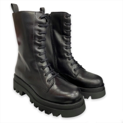 Botas de estilo militar con cierre acordonado y suela track. Estas botas negras están fabricadas con pieles de primera calidad.