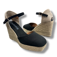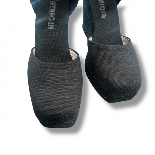 Alpargata esparto negra entera con una altura de 9,5 cm.