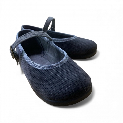 Zapato de niña estilo Mercedita con cierre en hebilla y suela de goma flexible y antideslizante.