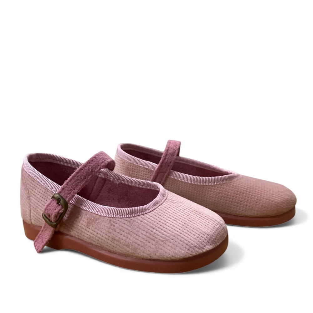 Zapato de niña estilo Mercedita con cierre en hebilla y suela de goma flexible y antideslizante.