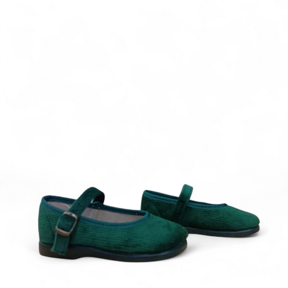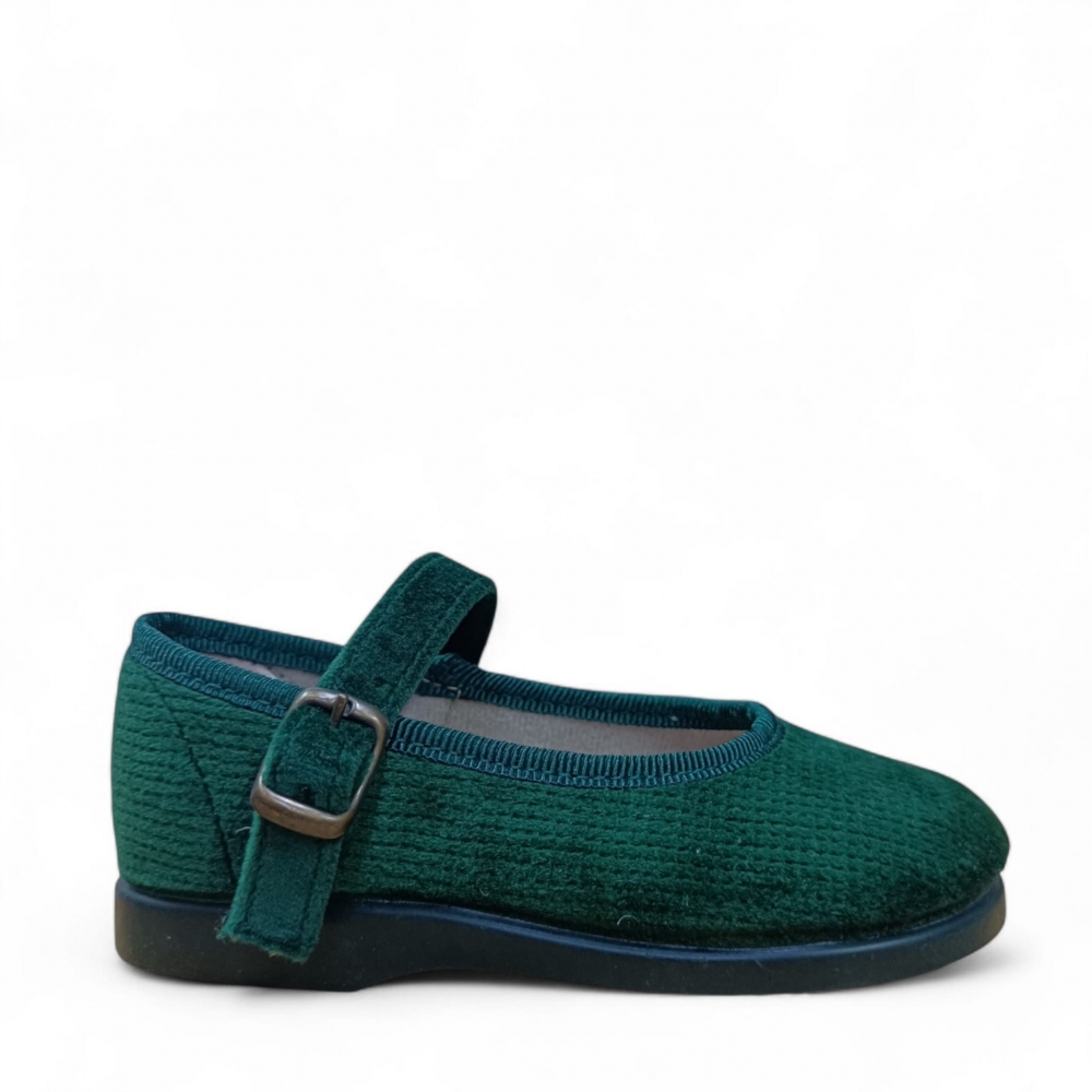 Zapato de niña estilo Mercedita con cierre en hebilla y suela de goma flexible y antideslizante.