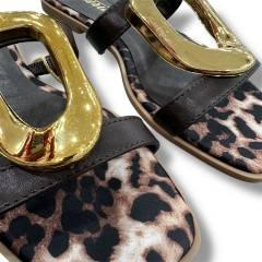 Sandalia tipo müller con acabados en leopardo y hebilla central.