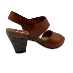 Sandalia de tacón medio fabricado en PIEL NATURAL con plantilla BIO.