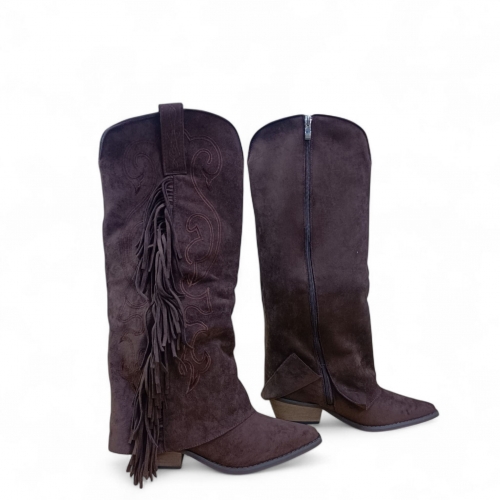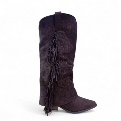 Botas tejanas de tacón medio y flecos en lateral.