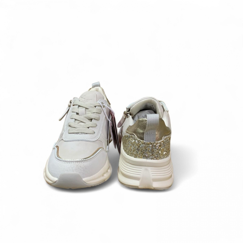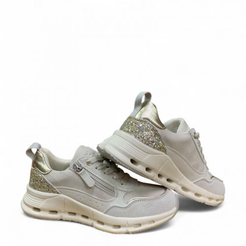 Zapatilla de niña, de la marca Xti Kids. Fabricada en material sintético con detalles metalizados y glitter que aportan un toque brillante y moderno. Cuenta con cremallera lateral para facilitar el calce. Suela deportiva con diseño innovador que incluye pequeños agujeros, ofreciendo mayor ligereza. Perfecta para un estilo casual y funcional. Este modelo ha obtenido el certificado vegano por la organización mundial PETA (Organización de los derechos de los animales).